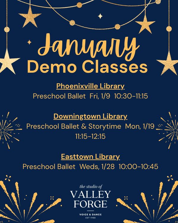 Every month, Miss Sarah visits local libraries to teach free demonstration Preschool Ballet classes. This is a great introduction to ballet for our youngest dancers. Please register in advance through each library's event page.